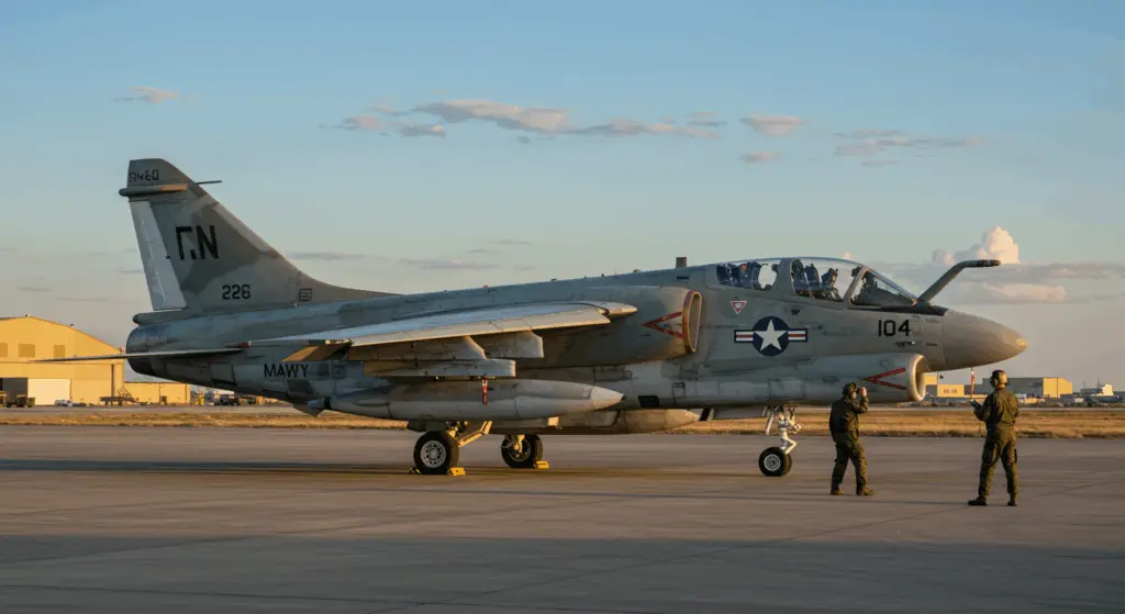 The LTV A-7 Corsair II transformed naval aviation during the Vietnam War with its exceptional bombing accuracy and impressive payload capacity. Nicknamed “SLUM” (Short Little Ugly Fellow) by its crews, this subsonic attack aircraft could deliver 15,000 pounds of ordnance with remarkable precision despite its unassuming appearance. From its first combat deployment aboard USS Ranger in 1967 to its final missions during Operation Desert Storm, the Corsair II demonstrated how smart design focused on combat effectiveness rather than pure speed could produce a highly successful attack aircraft.